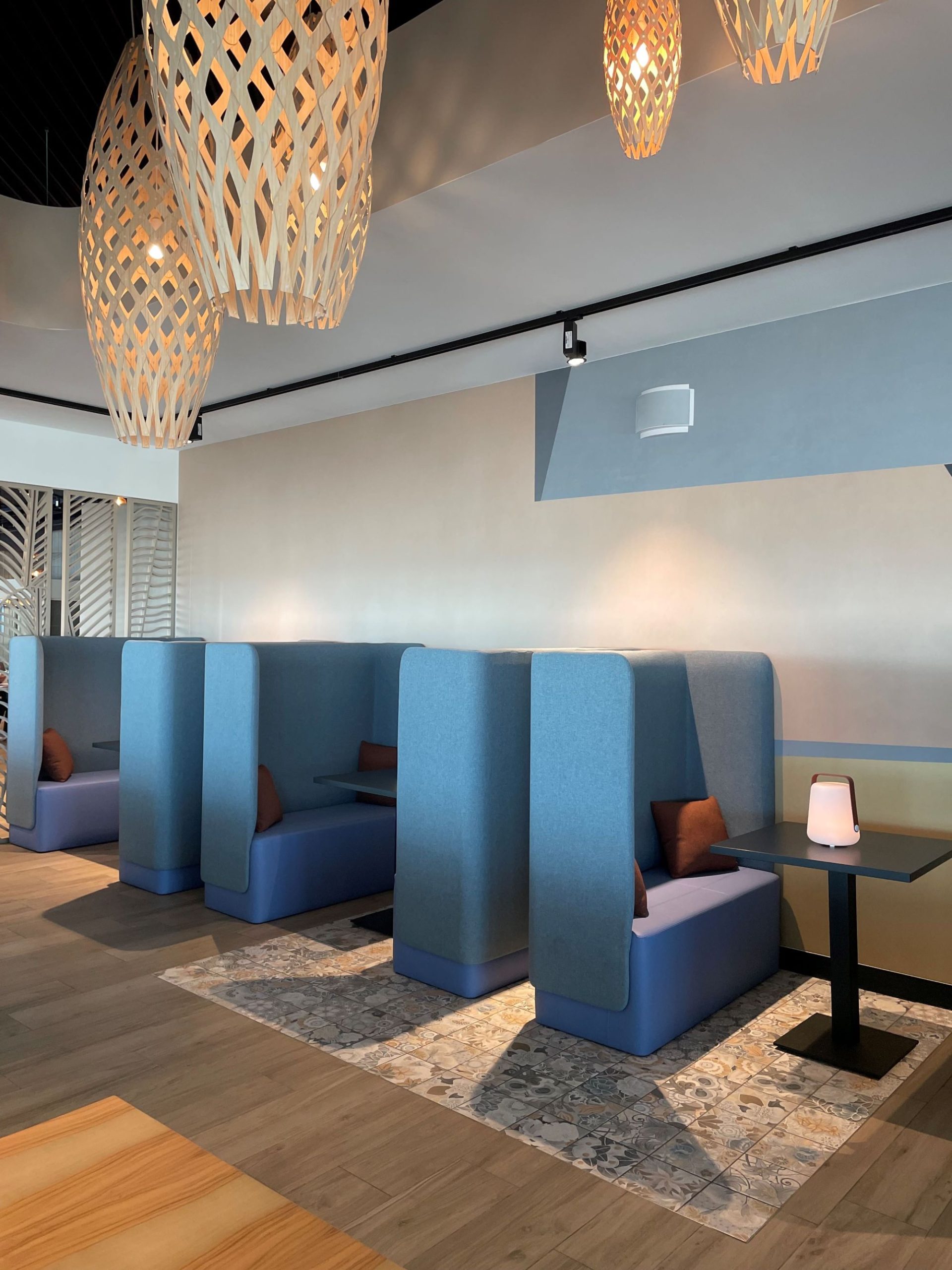 L’ensemble offre un environnement acoustique performant, dans un cadre calme et agréable, idéal pour s’isoler de l’agitation du terminal tout en attendant son vol. Un projet qui illustre l’expertise de Le Bureau Contemporain dans l’aménagement d’espaces de travail nomades et collaboratifs, alliant design, confort et fonctionnalité.