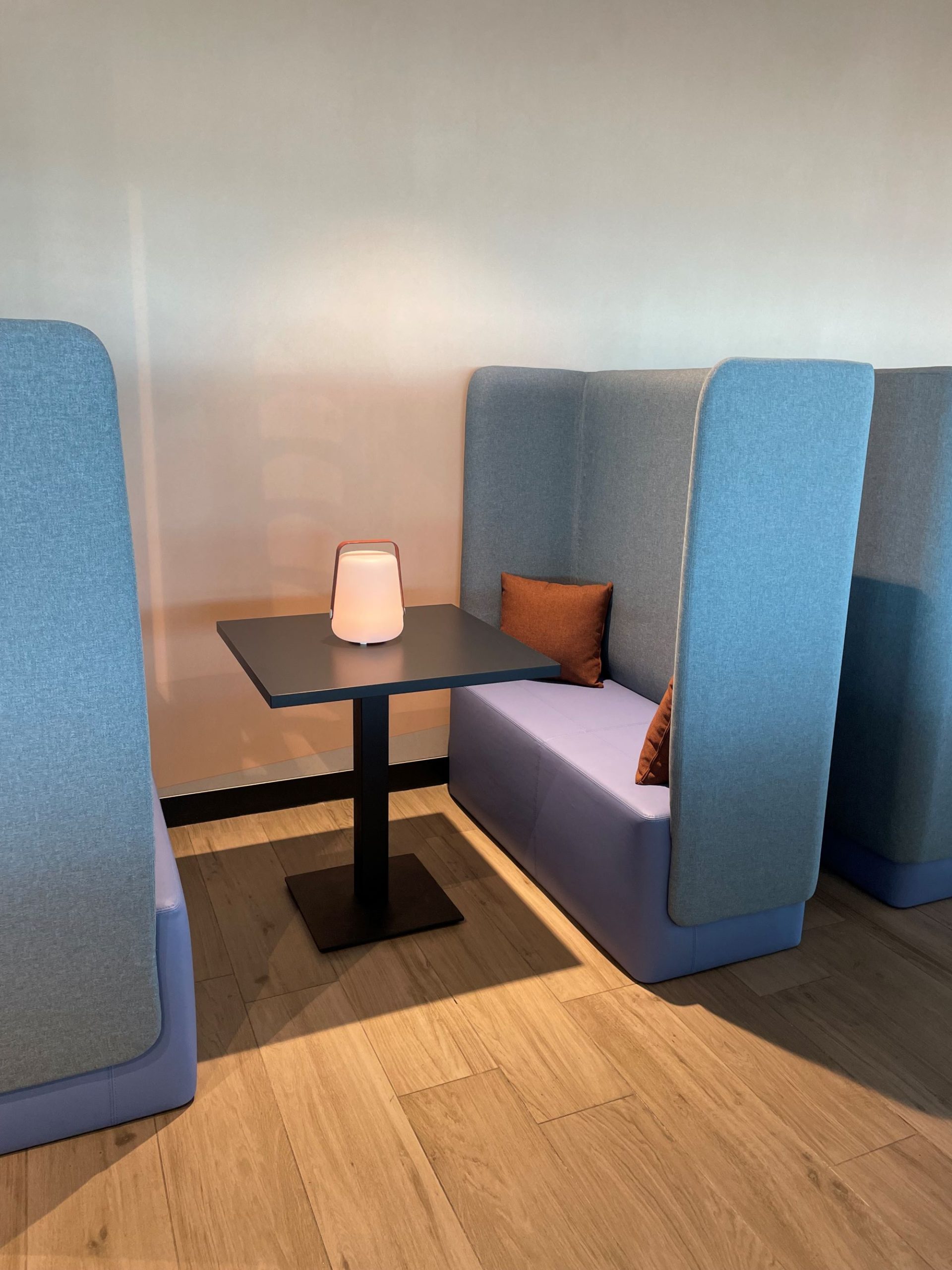 Conçu comme une parenthèse apaisante au cœur de l’aéroport, cet espace permet de passer des appels, consulter ses emails ou travailler en toute concentration, grâce à l’intégration de cabines acoustiques de notre partenaire Famo.
