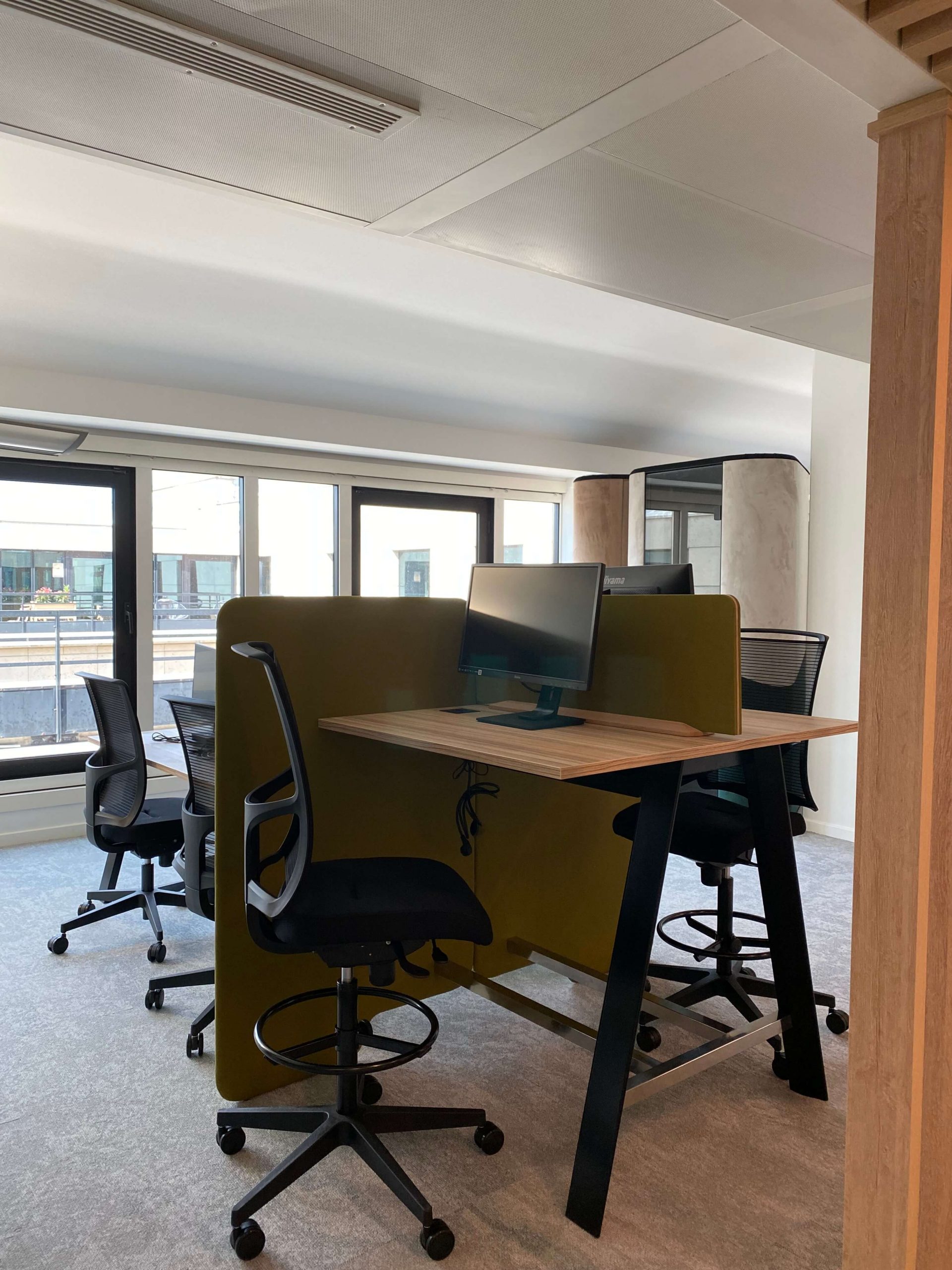 - open space avec postes fixes et salles à thème
