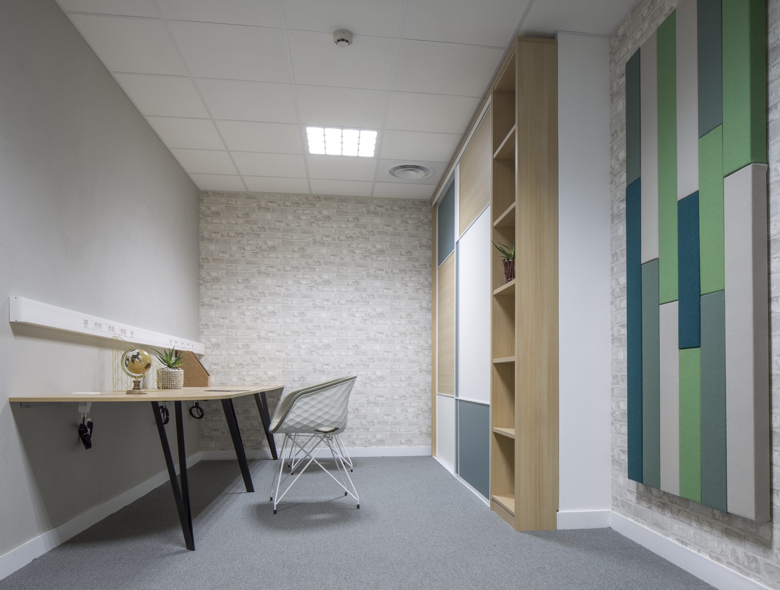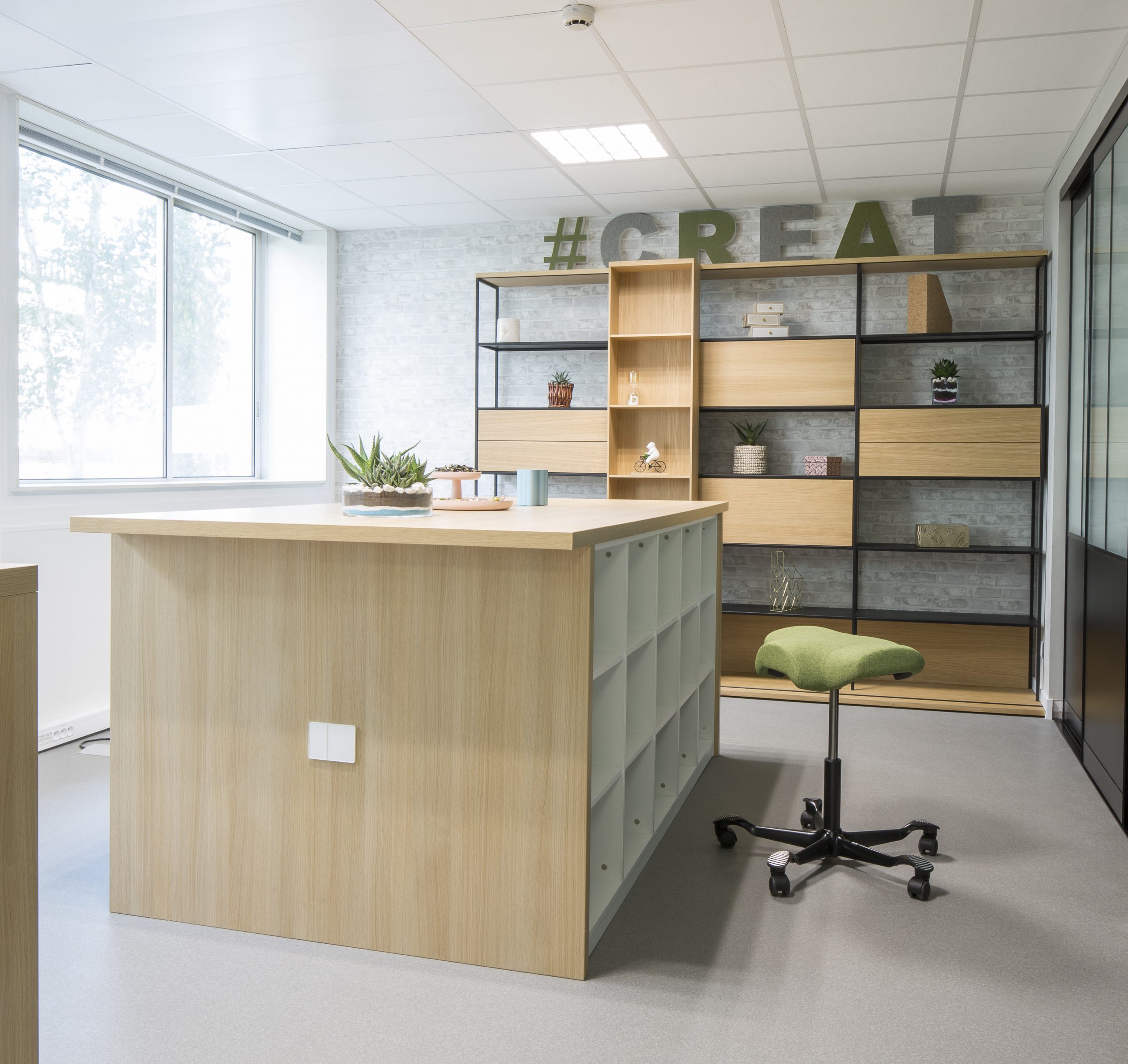 Optimiser un espace restreint pour y accueillir 12 personnes, tout en maximisant les surfaces de travail, les zones collaboratives et les solutions de rangement.