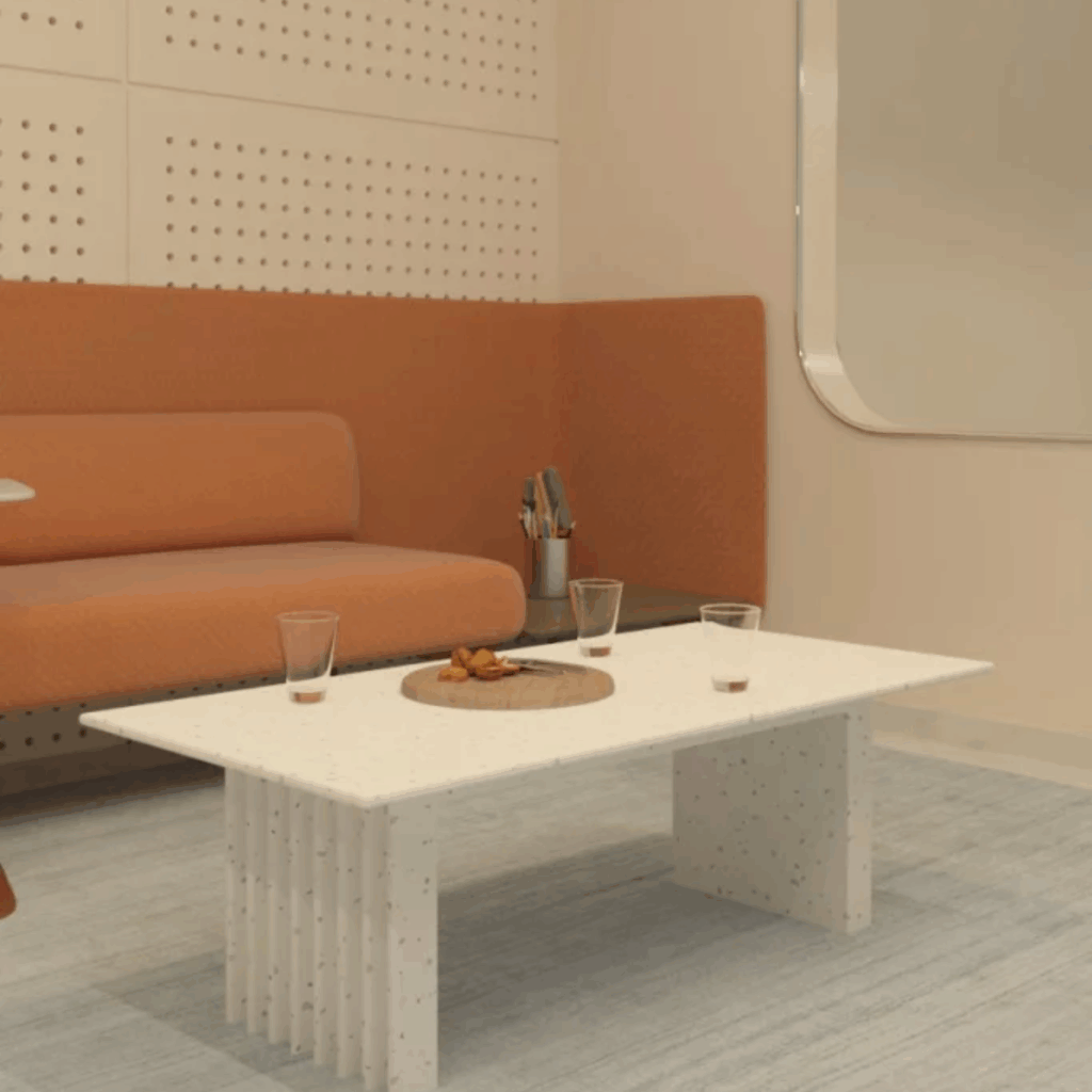 Rencontrez 21.60 – KÂMA, une table basse rectangulaire au design épuré et responsable. Assemblée sans colle ni polymères, elle allie robustesse et légèreté. Idéale pour cafétérias et espaces d’attente, elle valorise l’économie circulaire avec ses 21.60 kg de déchets recyclés.