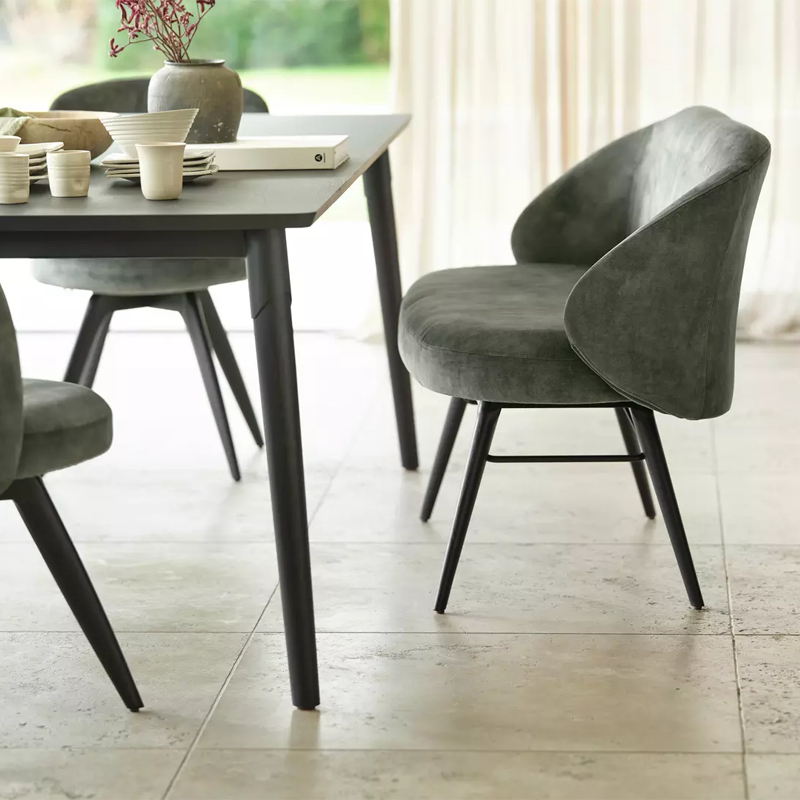 Plutôt que des accoudoirs classiques, cette chaise Neo présente un dossier incurvé qui revient vers l’avant. Une solution très esthétique, mais aussi très confortable. Ses pieds sont disponibles dans trois essences de bois : hêtre, chêne ou noyer. Plusieurs finitions sont possibles. Comme pour toutes les chaises Mobitec, c’est à vous de choisir sa couleur et son recouvrement (tissu ou simili).