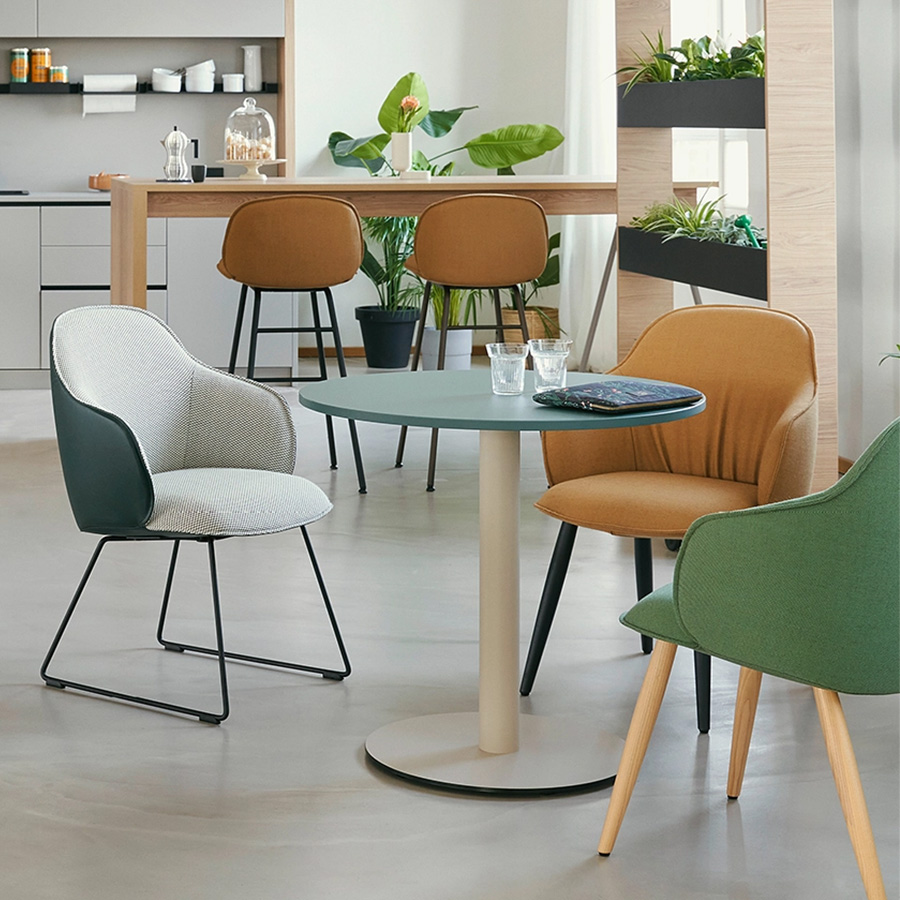 Lorsqu’on s’assied autour d’une table, c’est pour échanger des idées, faire des propositions, partager ses réflexions – avec un objectif : communiquer. La gamme de tables a été optimisée pour une utilisation dans les smart cafés, avec des hauteurs spéciales et des plateaux aux dimensions adaptées. se:assist étant conçue pour favoriser la convivialité et l’interaction entre les individus, que ce soit en milieu professionnel ou lors de moments de détente informels.